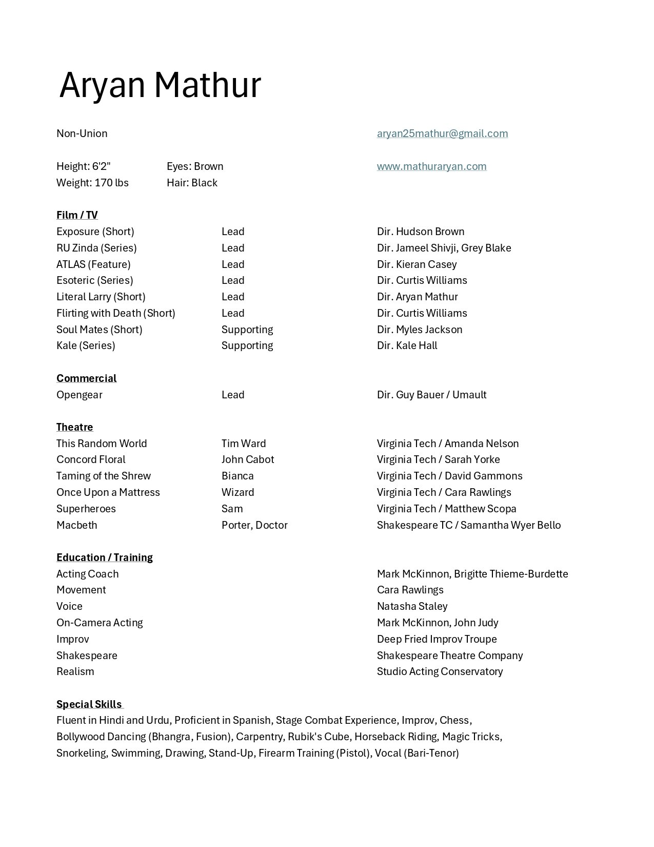 Acting Resume